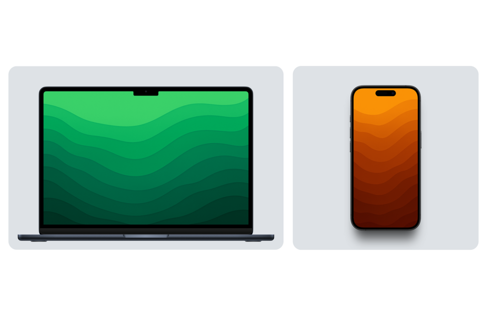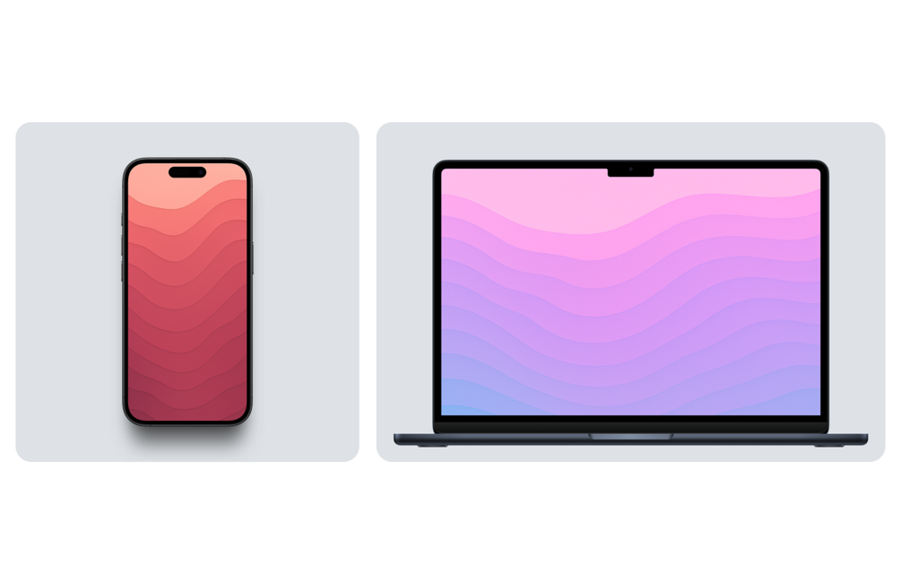 This set includes 15 high-resolution wallpapers for MacBook Pro and 15 for iPhone.